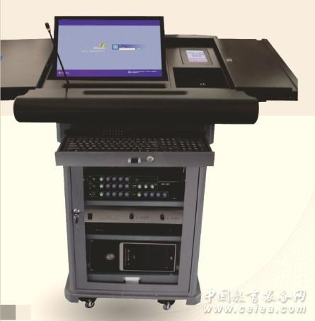 講桌內(nèi)部配備先進(jìn)的電動升降裝置,鼠標(biāo)&鍵盤,話筒,中控&功放,電腦,液晶顯示器,音