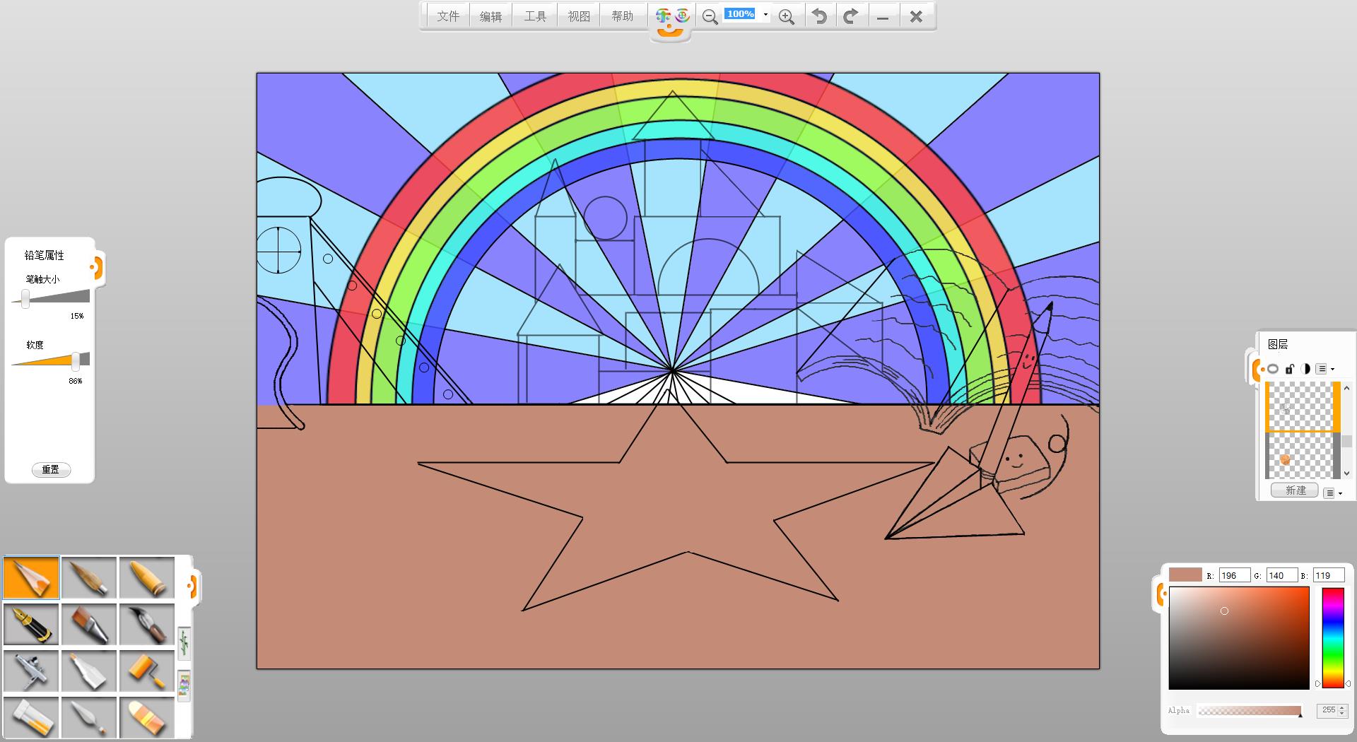 26.使用“星星”特殊筆觸,繪制一些不同顏色的星星豐富畫面。
