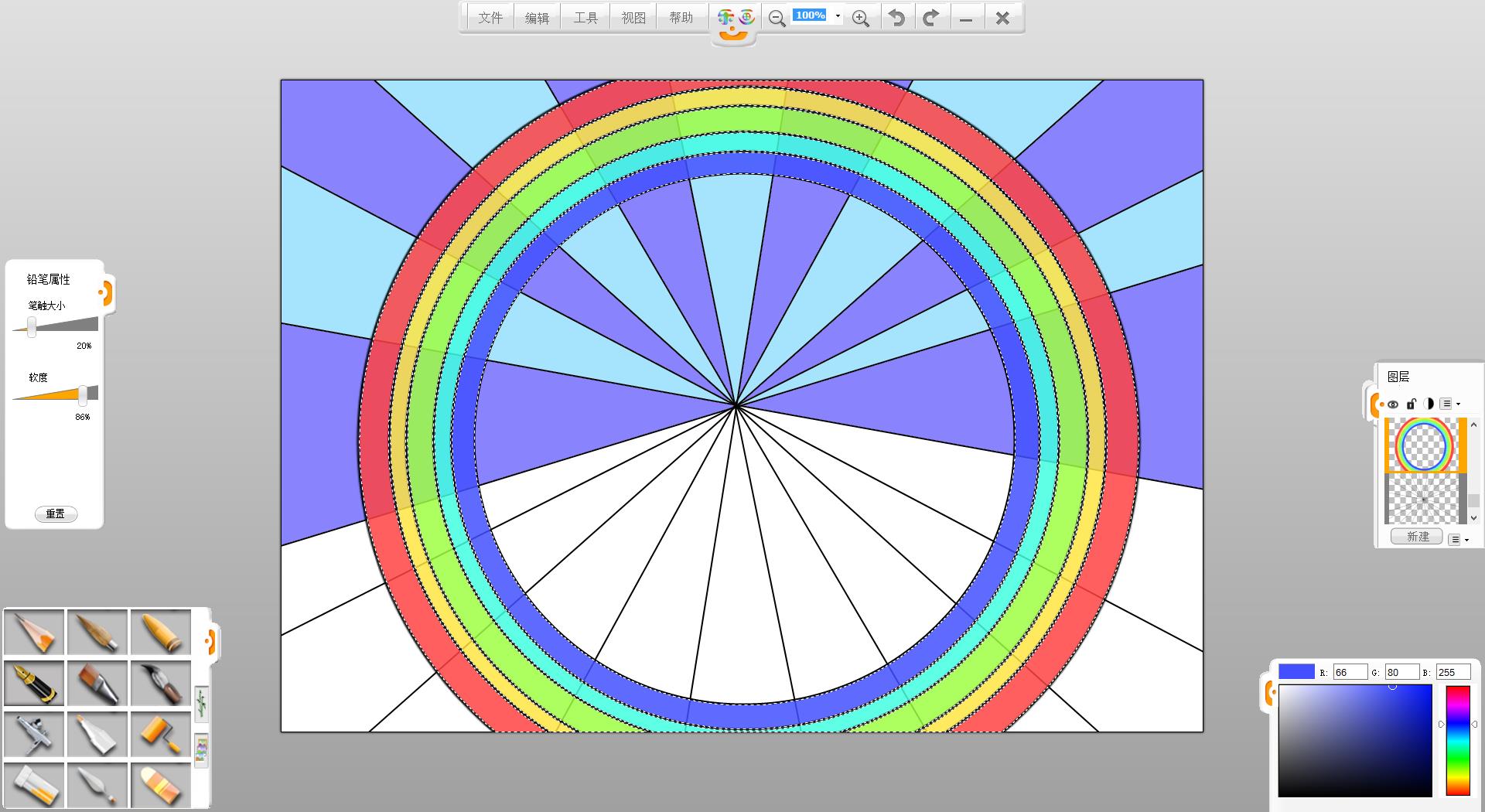 14.使用魔術棒工具選區后,使用油漆桶工具上色,繪制出彩虹。