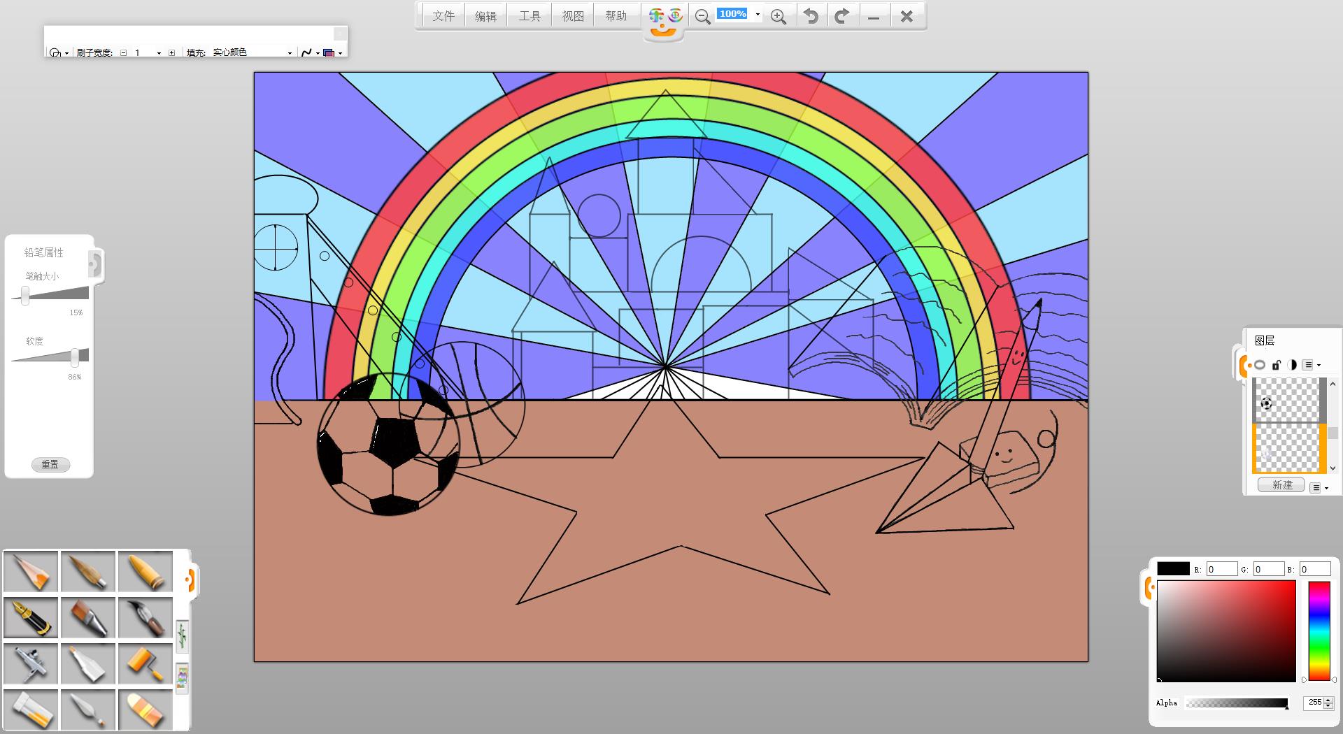 19.再用鉛筆筆觸和工具菜單下的橢圓工具繪制一個足球和一個籃球。