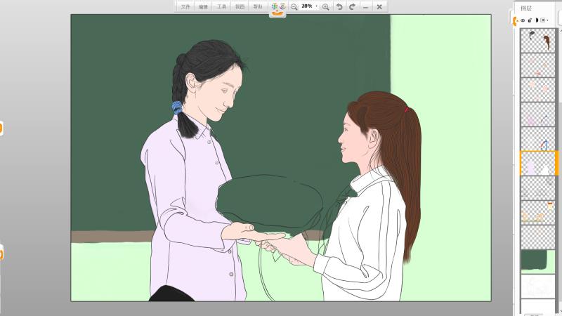 第四步:用鉛筆筆觸繪制草圖,定好構圖和人物與物品比例關系。