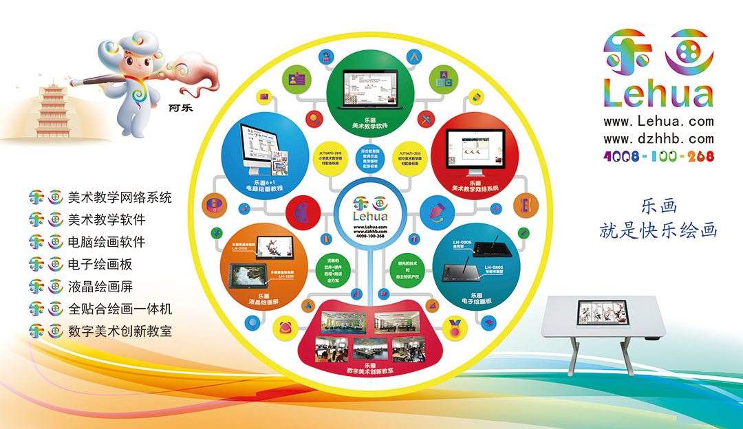 美術教學網絡系統、美術教學軟件、電子繪畫板、影像資料。3D打印機,3D樂畫筆。樂畫數字媒體創新實驗室以及樂畫藝術館整體方案 |