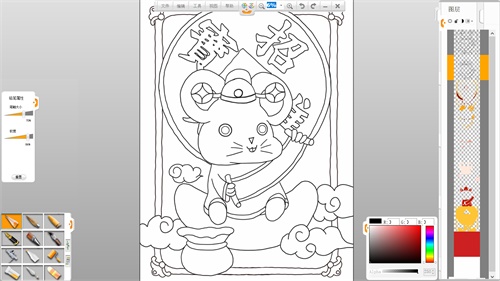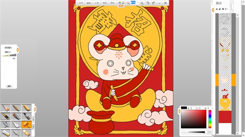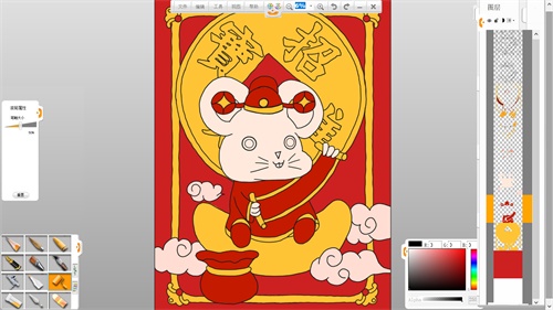 6、新建圖層,使用滾筒工具將老鼠皮膚和云朵上色;