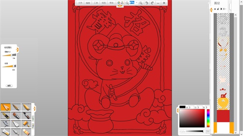 3、新建圖層,將線稿圖層置頂,使用油漆桶工具填充紅色底色;