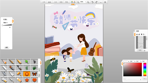 同時,參照大賽要求,也是按視覺設計賽項的具體要求尺寸,做了一個樂畫參照案例《教師節海報》