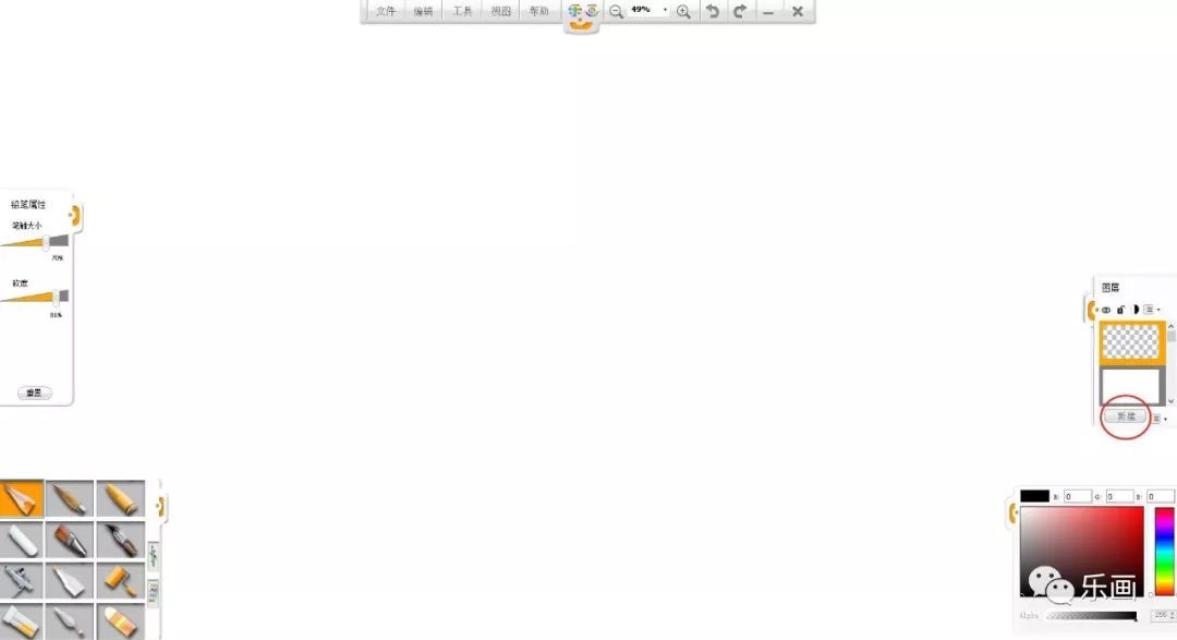 在右側(cè)圖層面板,點擊“新建”按鈕,會再新增一個透明圖層,開始創(chuàng)作。
