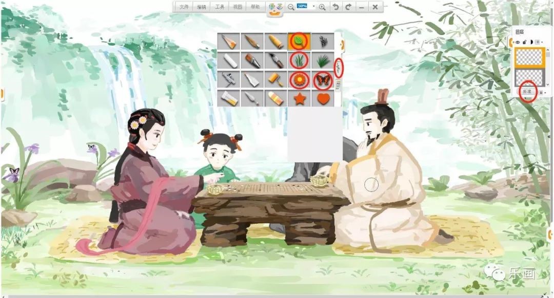 一幅趣味盎然、家人圍坐下棋的場景就繪制完成了。