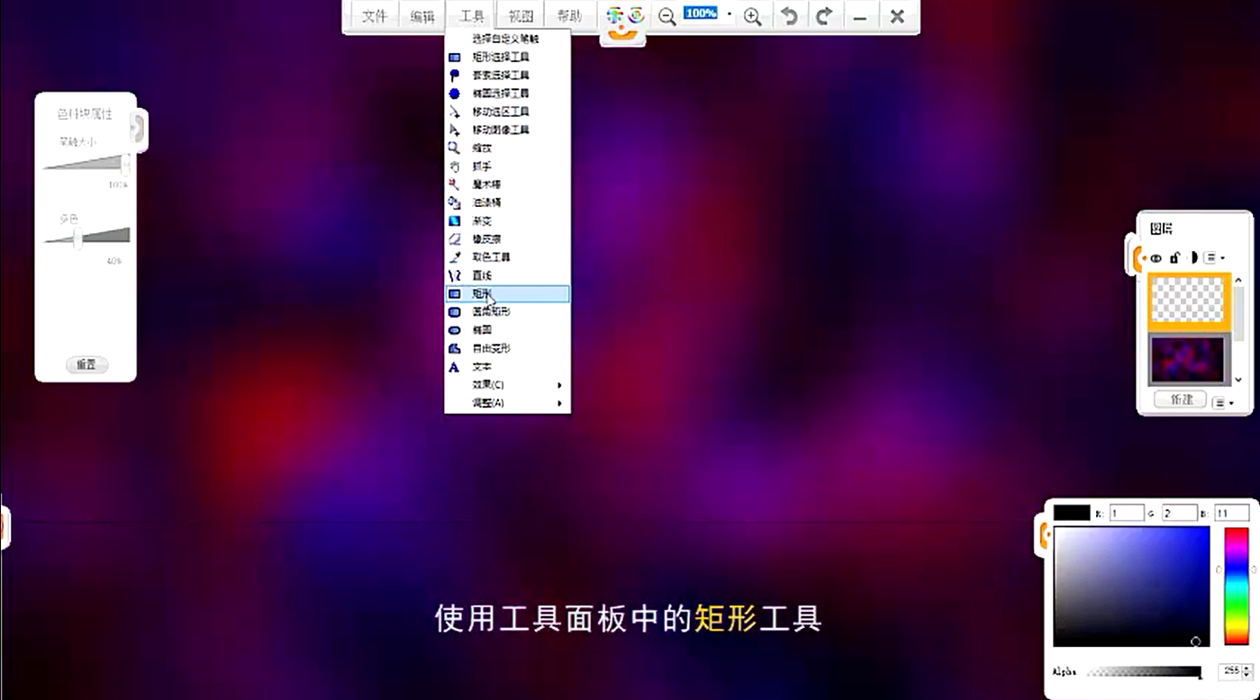 2、選用色料塊筆觸,選擇深藍(lán)色