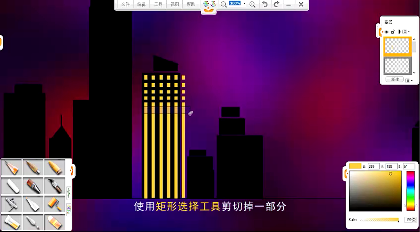 11、接下來(lái),繪制樓層上的窗戶燈光