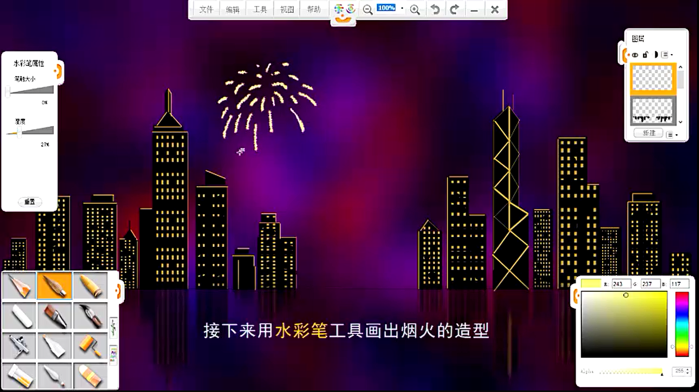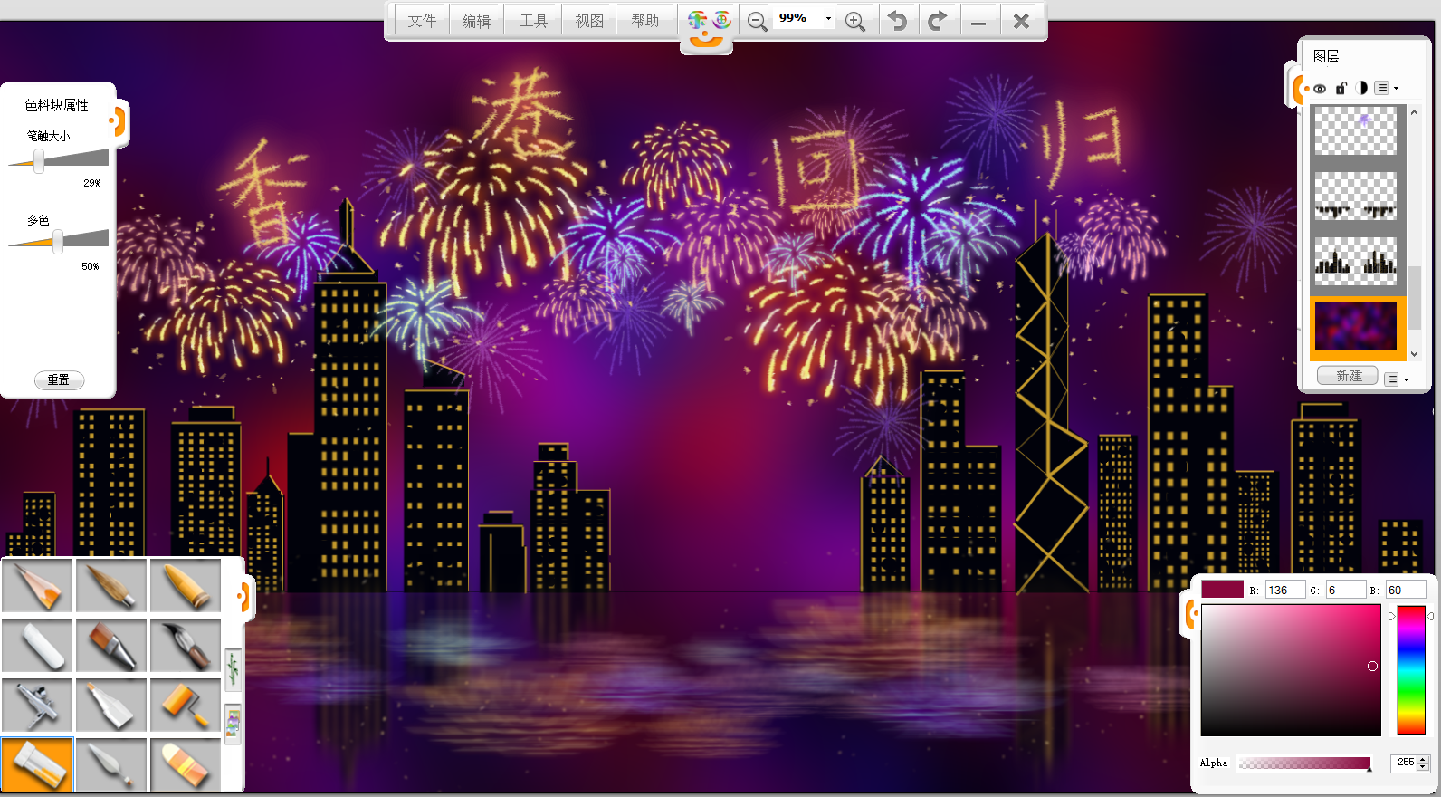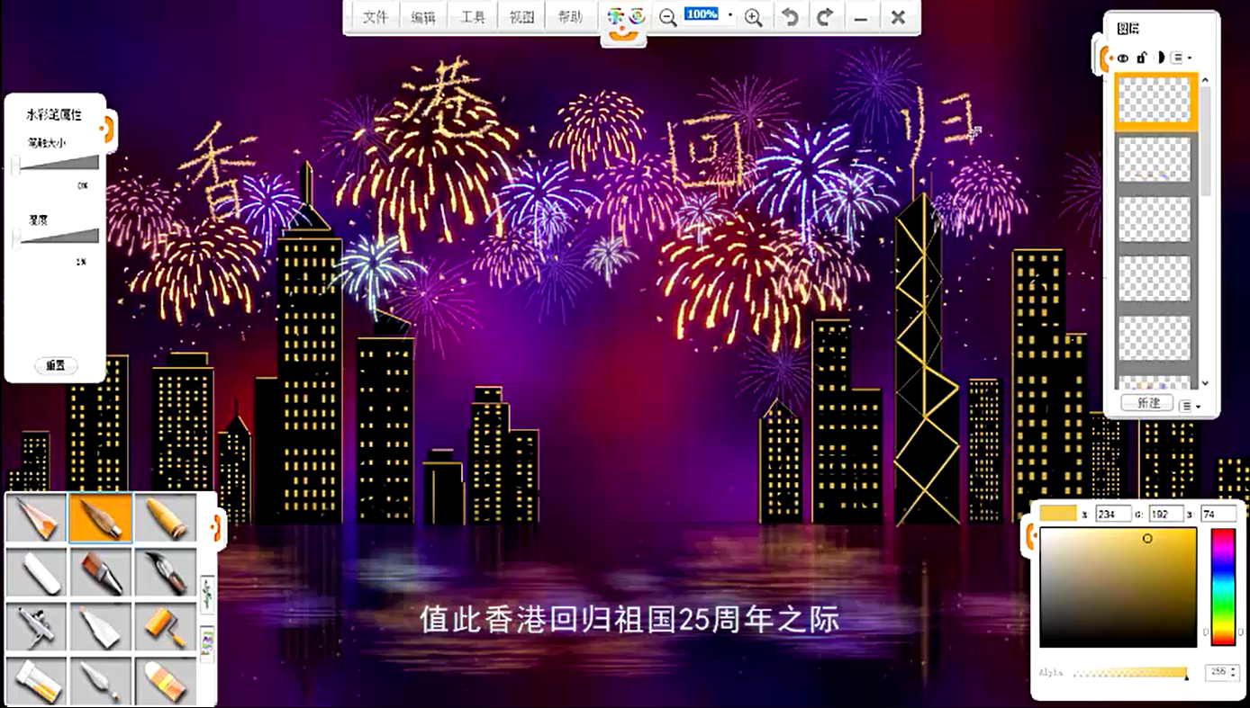 下面就使用樂(lè)畫(huà)繪畫(huà)軟件創(chuàng)作一幅慶祝香港回歸祖國(guó)25周年的作品《回歸之夜》。