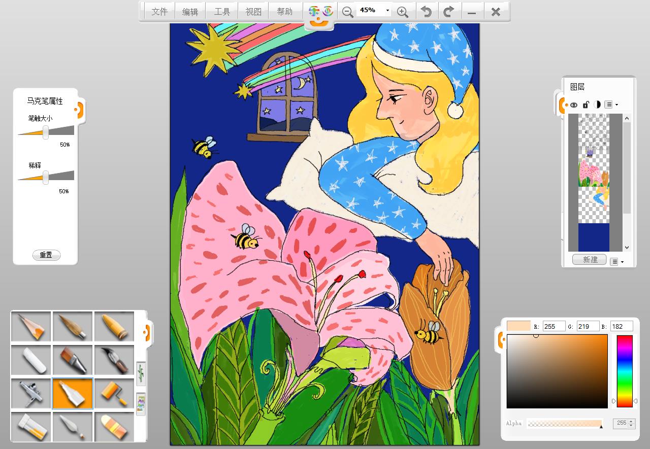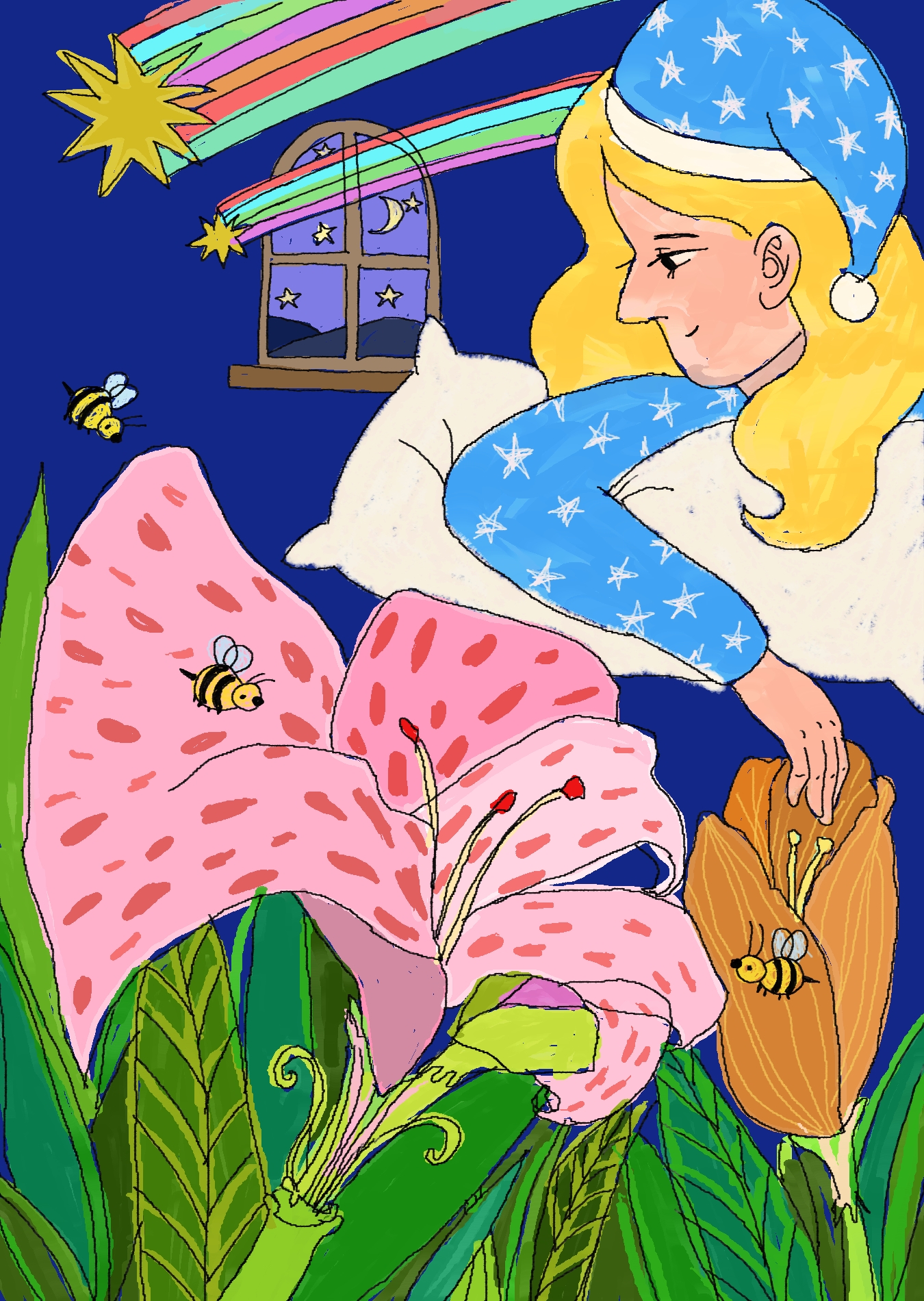 10、最后,給三只小蜜蜂涂上顏色,《我的夢境》就完成啦。