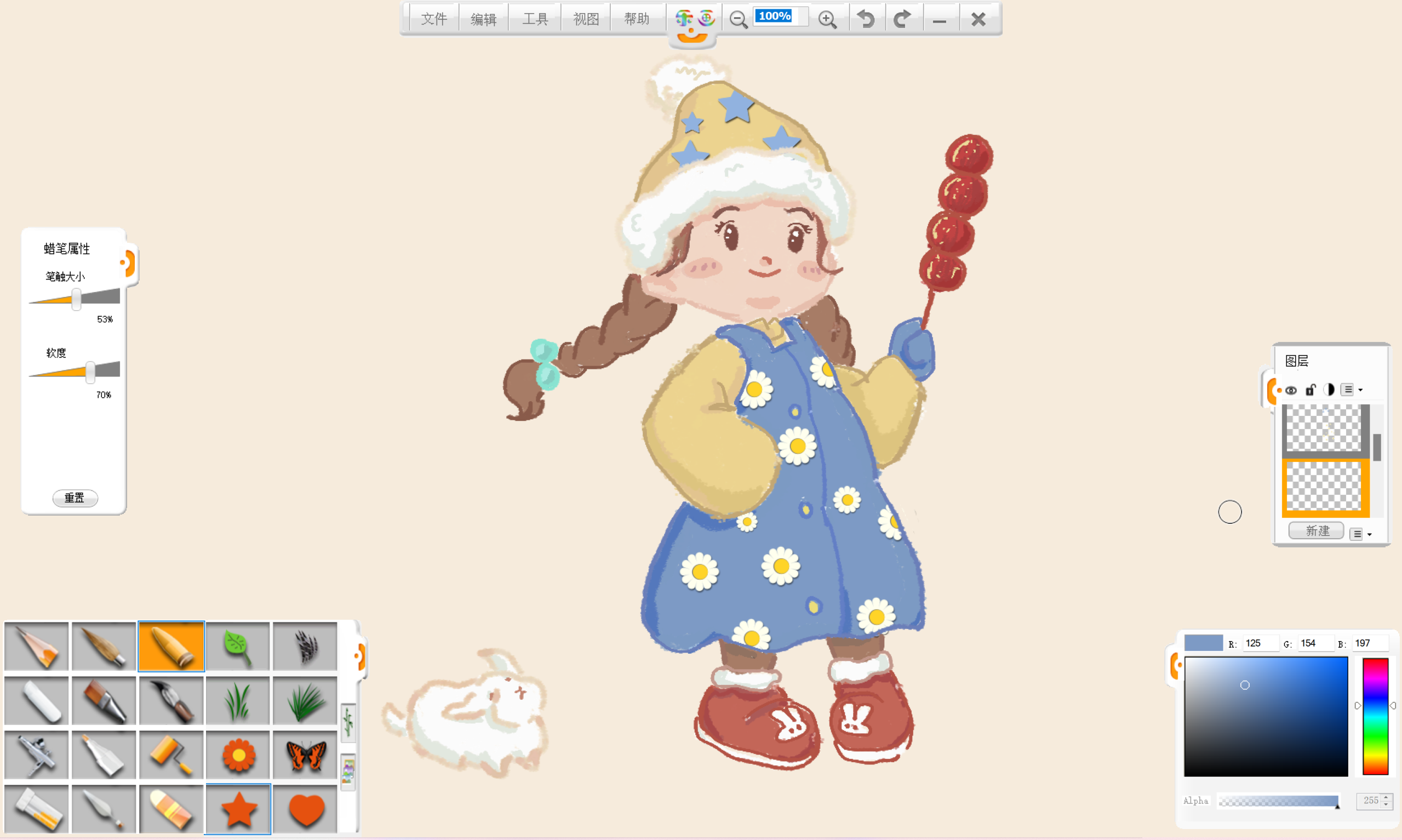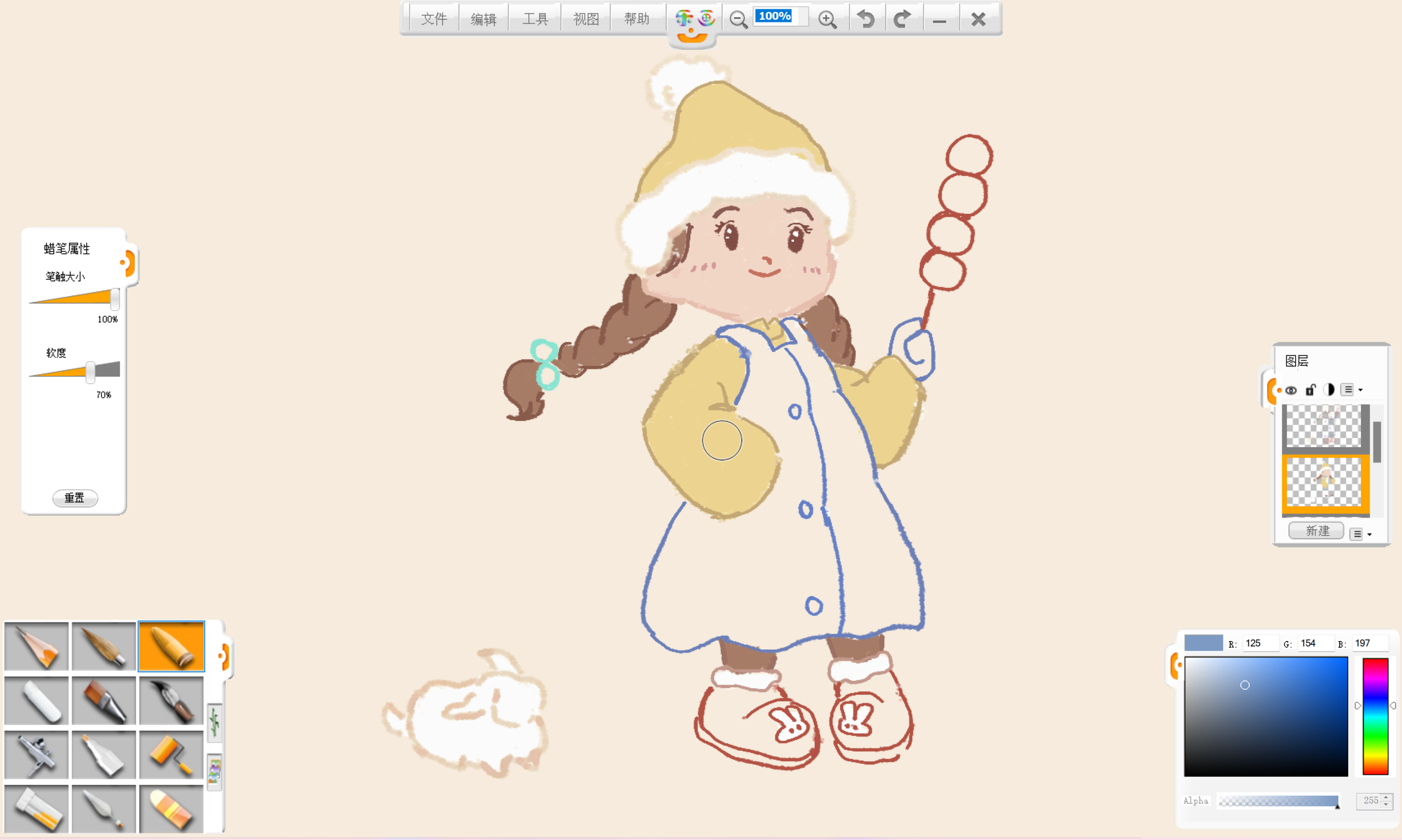 14. 將蠟筆筆觸的大小調(diào)小便于修改細節(jié),畫糖葫蘆的白色高光。