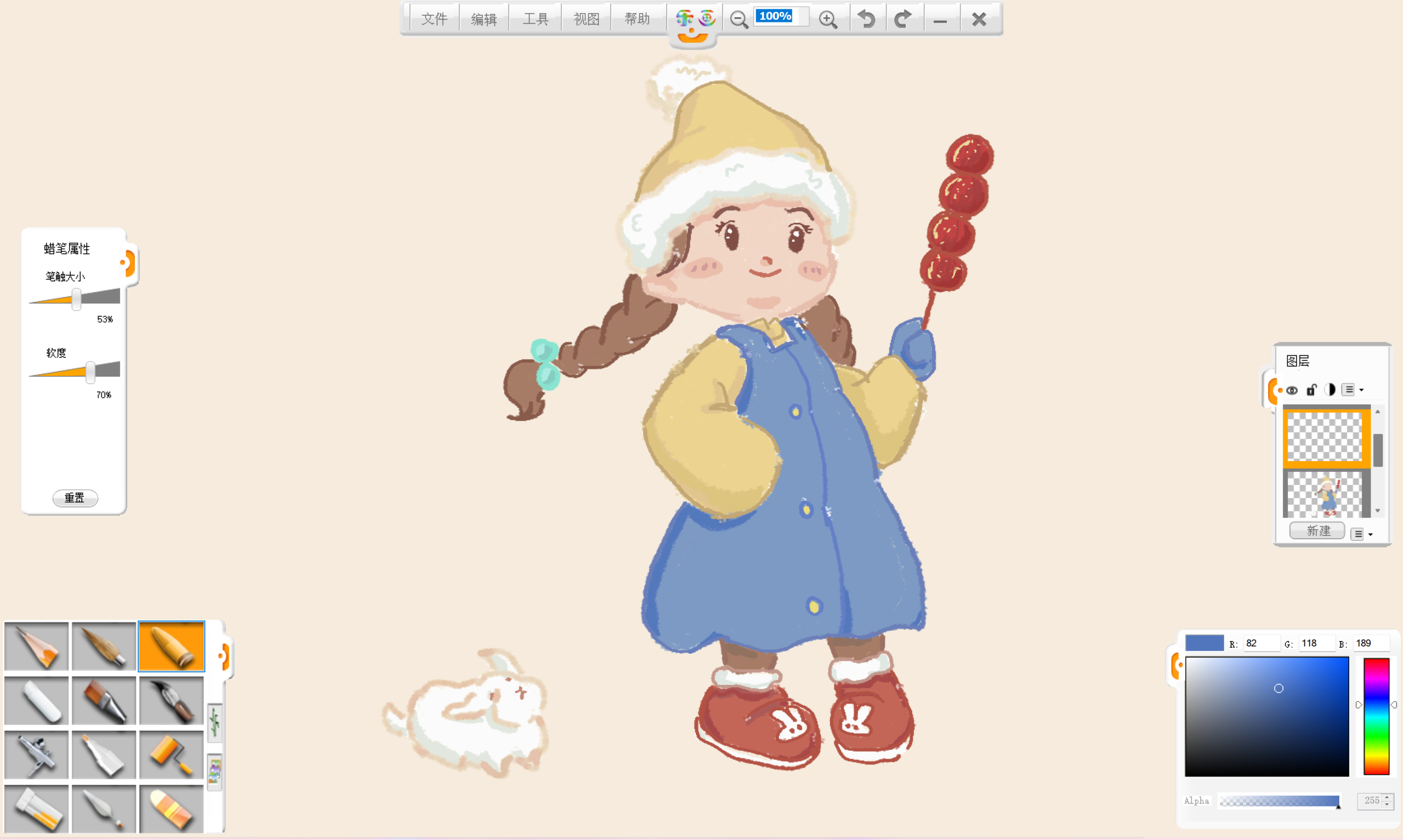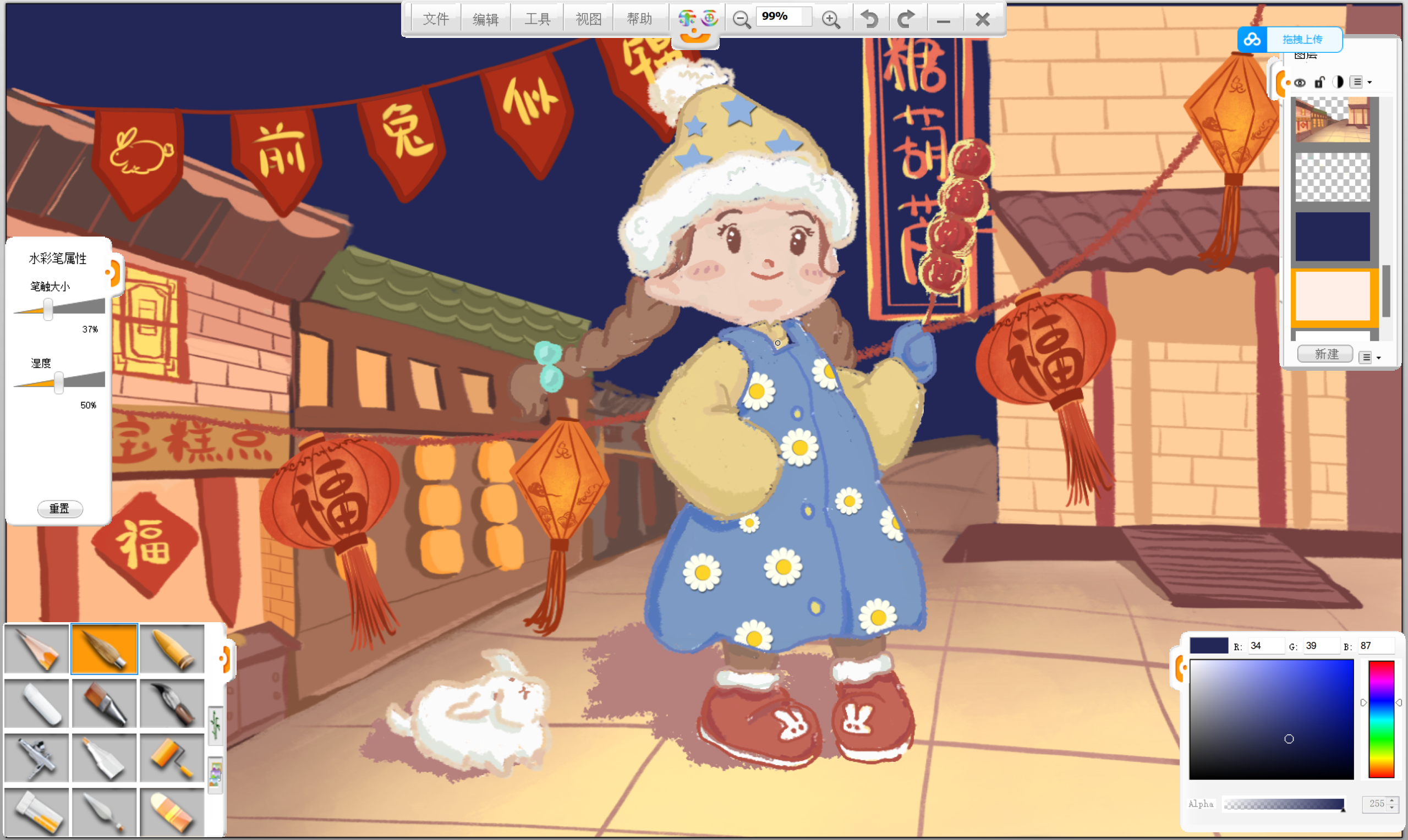 本案例介紹使用樂畫電子繪畫板在樂畫電腦繪畫軟件里進行一幅插畫《糖葫蘆串起快樂兔年》的創(chuàng)作。