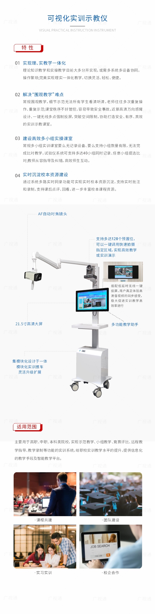 教育裝備數字化一站式解決方案,智能理化生實驗室、中考實驗操作考評系統、實驗仿真與教學系統、數字書法教學云系統、中學AI教考實驗室(升降式/便攜式智能終端)、頂裝/吊裝實驗室、探究實驗室、科學實驗室、人工智能科創實驗室、智慧書法教室、數字音樂教室、美術教室、數字地理教室、數字歷史教室、心理咨詢室、閱覽室、舞蹈室、陶藝室、烹飪教室、通用技術實驗室、勞動教育功能教室、科普探究等 |