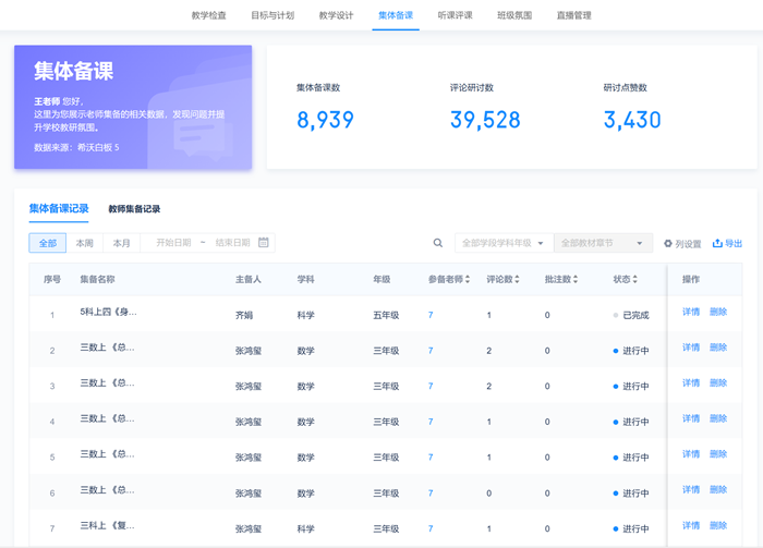 現在學校通過希沃魔方設備運維,工作臺即可一覽學校設備使用情況,線上巡課高效、便捷;一旦發現設備出現問題無須到達現場即可遠程控制修護,發現學生違紀問題時,亦可及時編輯信息警示學生,同時支持手機巡課,在不影響正常教學的情況下,大大提升了教務部門的工作效率,嚴格把控課堂質量。
