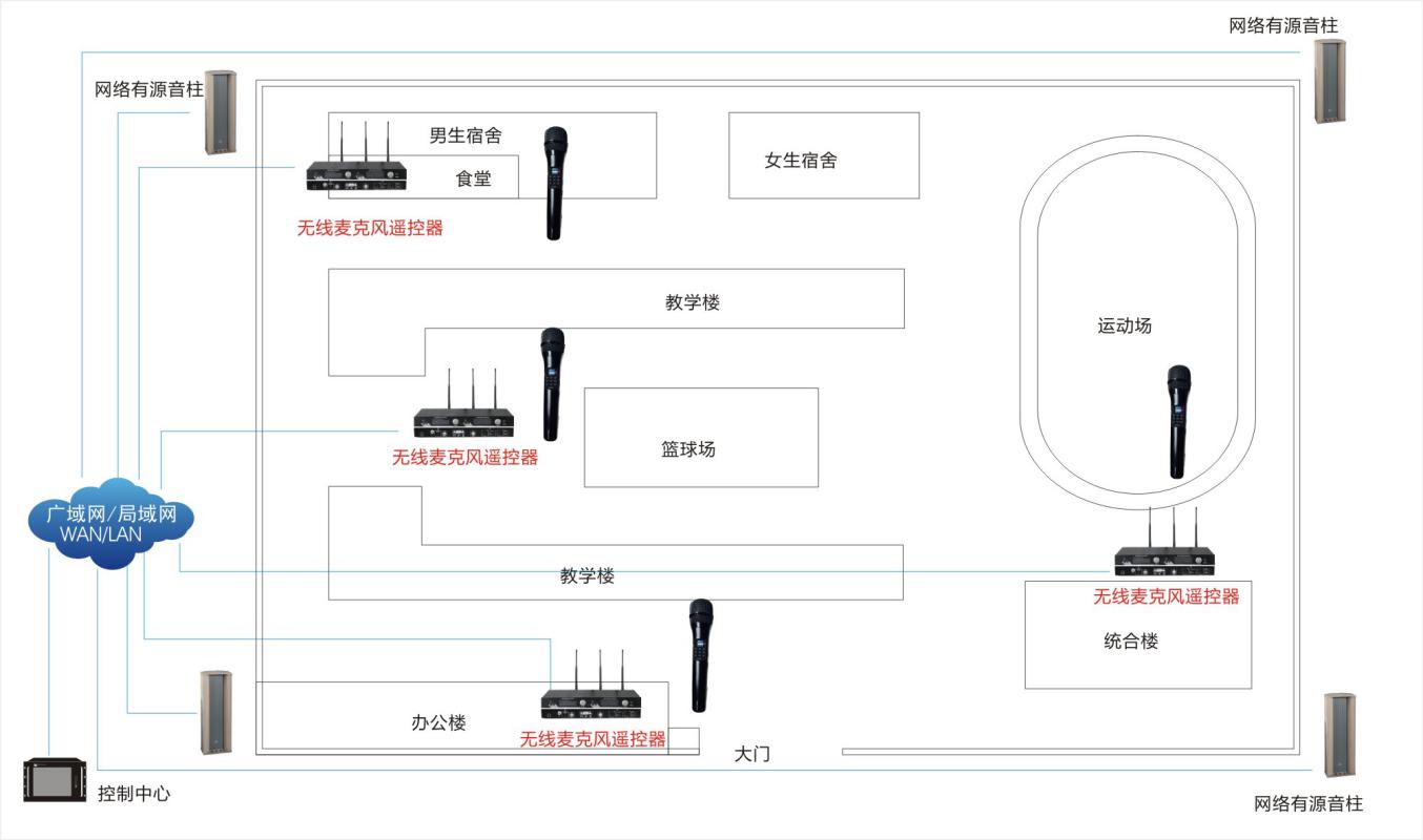 眾所周知,學校在使用公共廣播系統時,如開大會、做廣播體操,不僅要滿足擴聲要求,還要隨時切換各種背景音樂以配合現場應用。