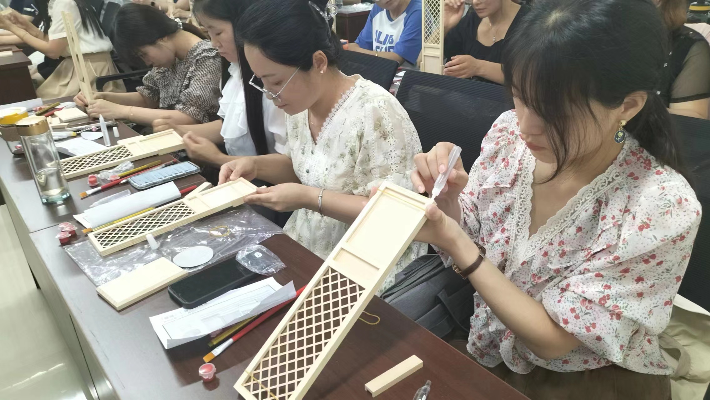 了解政策和實踐案例之后,教師們體驗了一節(jié)實操課程——木作文化課程。在這個課程上,每位教師們都親手制作了一扇美麗的隔扇,并學(xué)習(xí)隔扇背后的文化內(nèi)涵。這不僅讓教師們深入了解傳統(tǒng)文化,也讓他們在創(chuàng)作中體驗到了木作魅力。