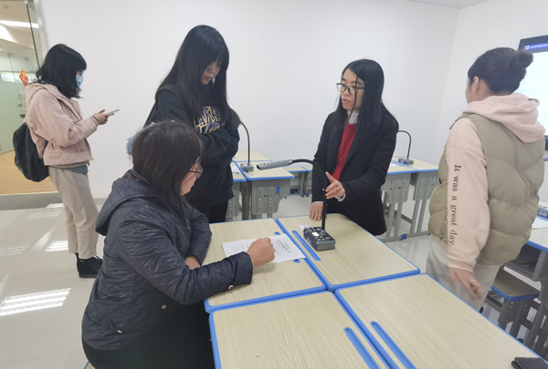 在這次的參觀交流中,張新華教授一行重點在共同探討與體驗無線全錄播與強交互專遞課堂在STEM中的實際應用。
