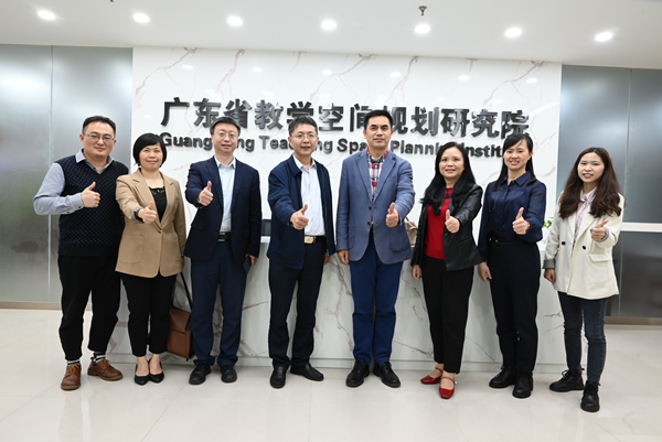 近日,廣東省教學空間規劃研究院迎來了廣州科技貿易職業學院黨委書記彭華國、教務處處長王永祥、智能制造學院院長葉萍、交通工程學院院長張紅偉、現代教育技術中心方楚鑫等一行領導的參觀指導。