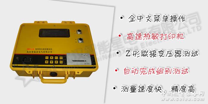 產品詳細介紹ZBZJ-Ⅲ 特性變比組別測試儀閱讀次數:9645JJF 1067-2000 《工頻電壓比例標準裝置校準規范》ZBZJ-Ⅲ 特性變比組別測試儀 使用手冊.pdfZBZJ-Ⅲ 特性變比組別測試儀 技術規范書.pdf (注意:右鍵目標另存為下載)變壓器變比組別測試儀、變壓器變比測試儀、變壓器變比全自動測試儀、全自動變壓器變比測試儀、變壓器變比組別測量儀、變壓器變比測量儀、變壓器變比全自動測量儀在電力變壓器的半成品、成品生產過程中,新安裝的變壓器投入運行之前及根據國家電力部的預防性試驗規程,要求對運行的變壓器進行匝數比或電壓比測試,可以檢查變壓器匝數比的正確性、分接開關的狀況、變壓器是否匝間短路、變壓器是否可以并列運行。傳統的變比電橋讀數不直觀,要進行換算,只能逐相進行測量。ZBZJ-III特性變比組別測試儀克服了傳統變比電橋測試的缺點,操作簡便直觀,一次完成三相變比或匝比測試,測試快,準確度高。 測試量程寬,最高達10000。 測試速度快,15秒鐘完成三相測試。 Ζ形聯接變壓器測試。 自動完成組別測試功能。 高、低壓反接的保護功能,變壓器短路、匝間短路保護功能。 打印機輸出測量結果,中文菜單顯示。 量程:0.9~10000 精確度:±0.1%+2字(0.9~500)、 ±0.2%+2字(501~2000)