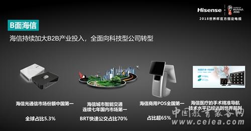 近年來,海信早就不止是家電企業的龍頭,而是早已跨越到了B2B領域,智能交通實現連續9年國內排名第一,打破國外技術壟斷;商用POS占有率全國第一;光通信器件接入網產品出貨量更是連續7年保持全球排名第一。2B板塊早已成為集團發展的重要引擎之一,是2500億的銷售目標中不可或缺的組成部分,因此,繼續并持久地向教育領域進軍,是基于集團發展戰略上的必然選擇,也是經過對當前局勢的審慎觀察后的重要決策。