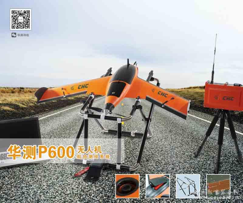 華測P600固定翼電動航拍測繪無人機參數(shù): 重量 2kg 尺寸 100 x 65 x 10cm 翼展 1m 機翼面積 20dm2 材質(zhì) 發(fā)泡聚丙烯及碳纖維增強結(jié)構(gòu) 電池 鋰聚合物電池,11.1V,8000mAh 動力 300W無刷電動馬達,后推式 相機 SONY NEX-7數(shù)位相機 像素 2470萬 飛行速度 巡航速度:81km/h,最大速度:92 km/h 飛行高度 100 - 3000 m 續(xù)航時間 40 -50 min 任務(wù)距離 40km 起飛 彈力繩 和 彈射架 降落 降落傘 風(fēng) 四級以下 雨 小雨 傳輸頻率 434/868/912MHz(可定制化) 19200bps,半雙工,8頻道 傳輸距離 全向型天線:5km 指向型天線:10km 拍攝面積 3km2(GSD 5cm)、5km2(GSD 10cm)