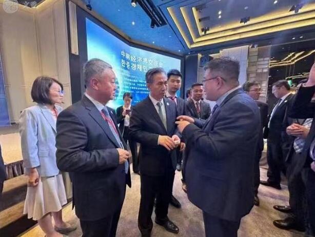 在峰會上,中國國際貿(mào)易促進(jìn)委員會任鴻斌會長與文香董事長朱玉榮深切交流。同時(shí)朱玉榮董事長還與其他參會領(lǐng)導(dǎo)和企業(yè)家共同探討企業(yè)創(chuàng)新發(fā)展和市場拓展的新機(jī)遇。朱玉榮董事長表示,通過此次峰會,他深刻感受到了中日韓三國在經(jīng)貿(mào)領(lǐng)域的緊密聯(lián)系和廣闊合作前景。他相信,在三國領(lǐng)導(dǎo)人的共同推動下,中日韓三國將進(jìn)一步加強(qiáng)經(jīng)貿(mào)合作,實(shí)現(xiàn)互利共贏。