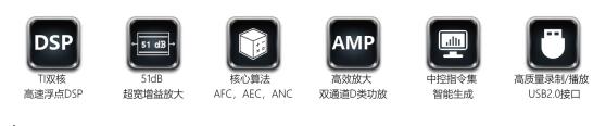 LION數字音頻一體機在TIGER專業版處理器基礎上集成了雙通道145W數字功放模塊。信號處理與功率放大在一塊主板上工作,縮短了信號通路,簡化了工程布線。支持帶電源RS232控制端口。可選配最新的反饋消除(AFC)、回聲消除(AEC)、噪聲消除(ANC)算法。