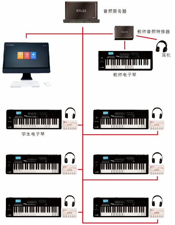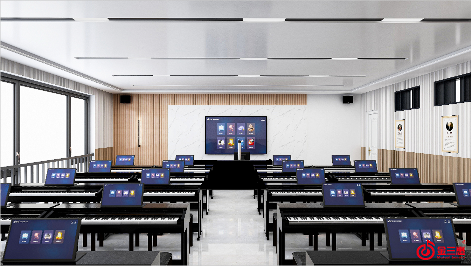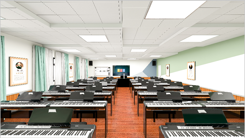 電鋼琴教室是一種專業教學空間,通過數字化、信息化建設的應用,有效避免了課堂上學生琴相互干擾,真正實現大班授課,增加現場教學質量和效率。