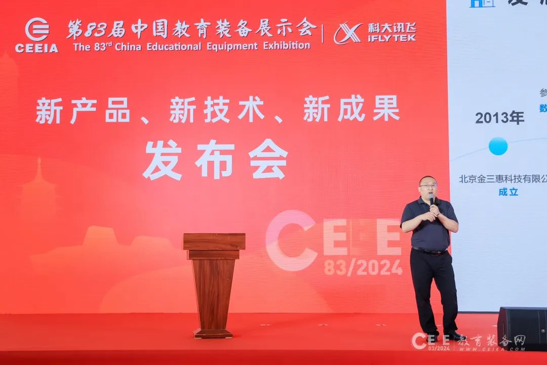 總經理李現峰在第83屆中國教育裝備展示會——“新產品、新技術、新成果”發布會上,進行“美育教育平臺解決方案”的專題演講。