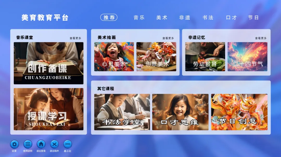 美育教育平臺專注于美育教育,積極響應(yīng)國家政策,立足當下素質(zhì)教育需求,充分利用現(xiàn)代信息化手段,打造數(shù)字化、可視化為一體的智能數(shù)字美育教育平臺。