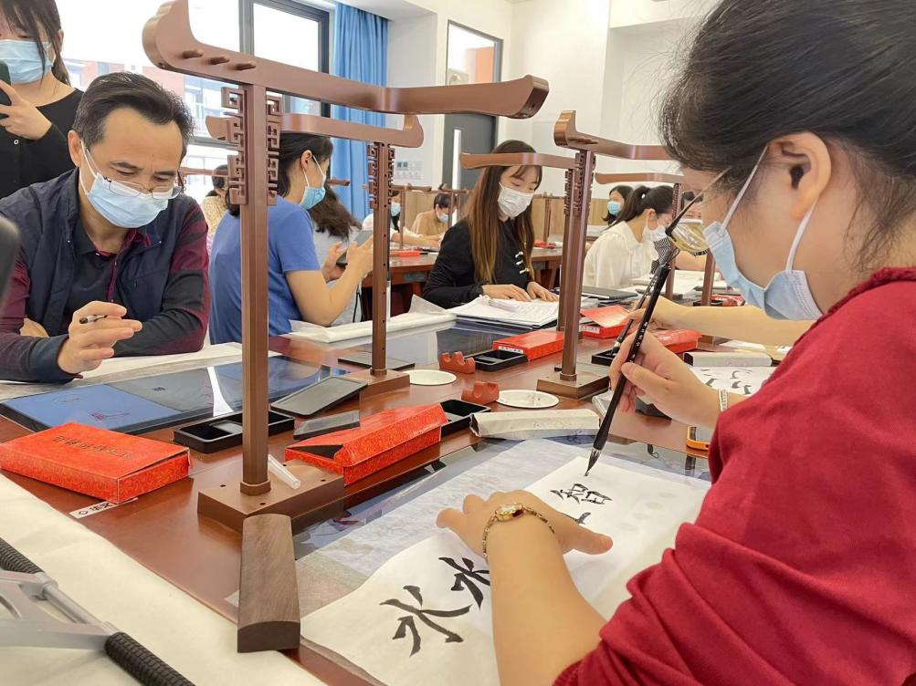 景龍小學的老師們在華文眾合智慧書法教室中對學生端的智慧書法系統進行了體驗,科技與傳統相結合的智慧書法新模式讓老師們紛紛感嘆。新的學期,讓書法教學更上一層樓,傳承弘揚中華優秀傳統文化,幫助學生養成良好的書寫習慣,激發他們對祖國傳統文化和語言文字的熱愛,助力“雙減”提質增效。