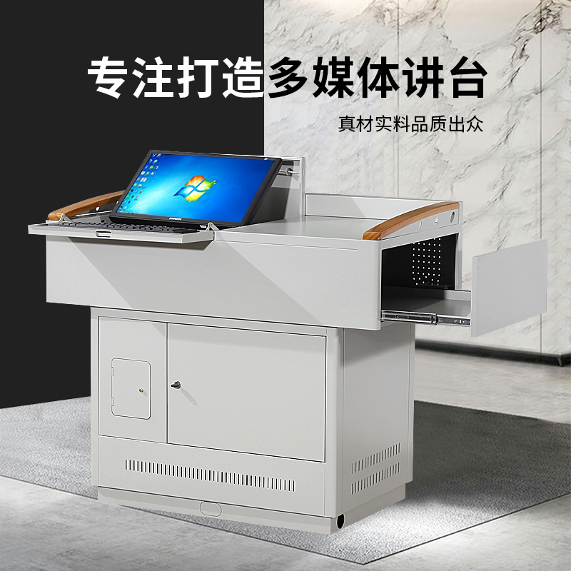產(chǎn)品詳細(xì)介紹1.外形尺寸:1200*700*1000mm;上柜體:長(zhǎng)度1200mm,寬度700,高度340mm;下柜體:長(zhǎng)度900mm,寬度600mm,高度660mm; 2.采用1.0mm-1.2mm優(yōu)質(zhì)精裝冷軋鋼板,經(jīng)數(shù)控激光切設(shè)備加工而成,表面酸洗、磷化、防腐、防銹、鈍化處理后靜電噴塑(顏色用戶(hù)可選定),塑面經(jīng)久耐用。 3.講臺(tái)桌面采用平面設(shè)計(jì),可以放置17-24寸不同品牌的液晶顯示器,顯示器固定在活動(dòng)支架上。右前方平面可放筆記本等設(shè)備; 桌面四周半包圍結(jié)構(gòu),有效防止物品滑落; 4.講臺(tái)右側(cè)設(shè)置隱藏式抽拉展臺(tái)抽屜(長(zhǎng)*寬*高:580*515*200 mm) 5.講臺(tái)扶手采用橡木制成,表面噴高檔防滑漆,使用起來(lái)光滑度高, 使整個(gè)講臺(tái)看起來(lái)美觀大方。 6.整體沖壓成型,整體結(jié)構(gòu)緊湊,空間設(shè)計(jì)合理; 7.講臺(tái)下柜前后門(mén)均可打開(kāi),電腦主機(jī)的光驅(qū)和USB接口設(shè)有專(zhuān)門(mén)的可開(kāi)合小門(mén),方便放設(shè)備,后方有上下門(mén),便于檢修設(shè)備,下門(mén)沖散熱孔,方便散熱;整個(gè)下柜可作為儲(chǔ)物柜使用; 8.全部的加工件均采用模具成型,激光切加工而成、配合優(yōu)良的焊接工藝,保障尺寸精度及各部件一致性,保證安裝的方便快捷。 9.整個(gè)講臺(tái)采用上下分體,拼裝組成,大大的減少了運(yùn)輸成本。 |
