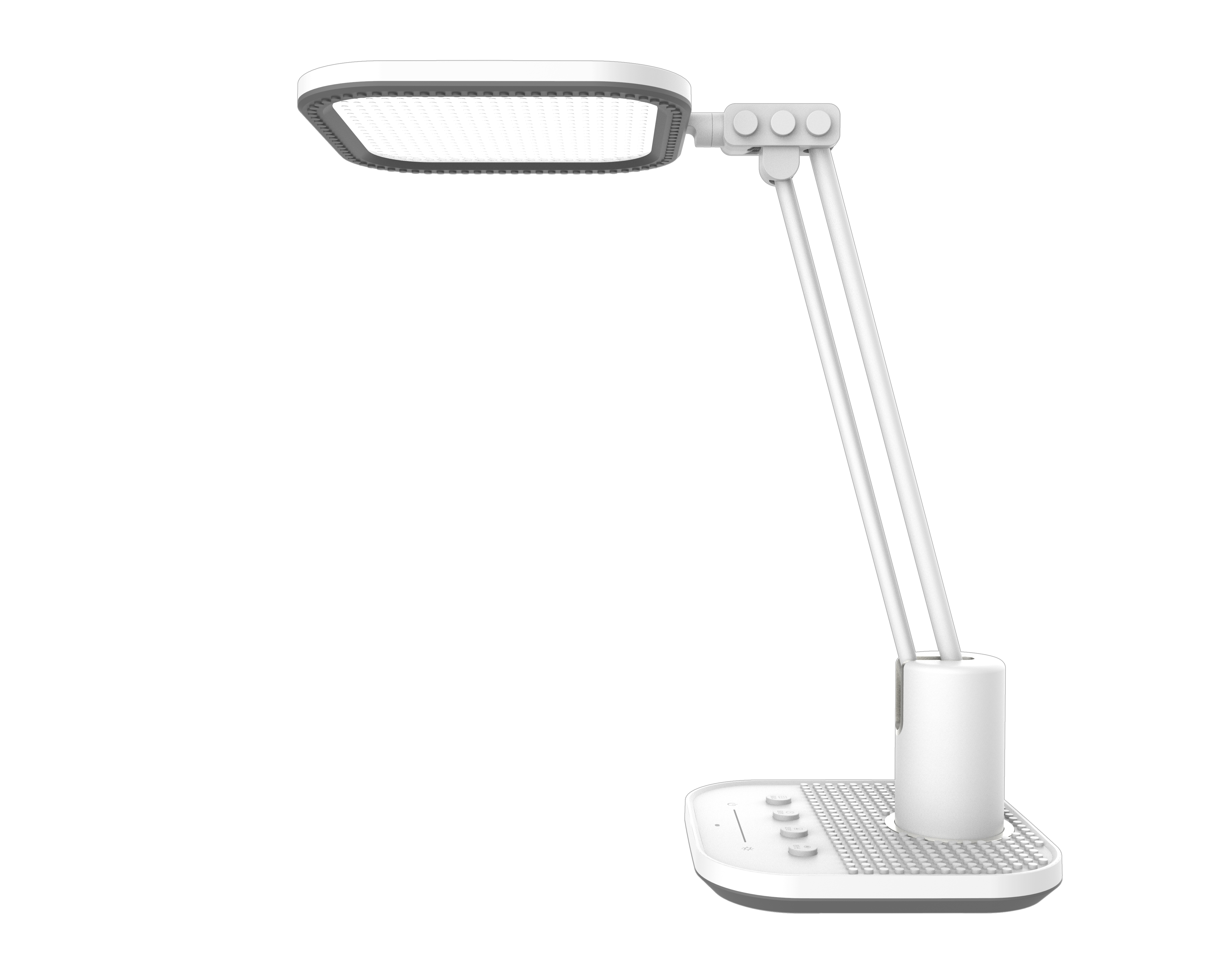 功率:13W 光通量:870lm 光效:66.9lm/W 功率因數:0.5 色溫:3000-5000K 額定顯指:95 頻閃深度:1.6% 藍光危害:RG0 色容差:低于0.7 主要功能:定時休息,自動感光,動態調光,眼保健操 技術及工藝創新要點: 美的樂享臺燈采用自主外觀、結構、電控專利設計,產品整體操作方便,可多方向調角度。產品整體光電色、眩光、壽命等性能優秀。 相對于市面上常見“雙桿”工藝技術,美的樂享臺燈主體采用“防滑”轉軸結構工藝設計,轉動關節部分壽命較優。 燈光控制采用自主設計的燈光AI智能算法,使用戶在每個時間段都能感受到燈光的自動調節,有利于保護視力。 獲獎、專利情況: 外觀專利:(已授權) 專利號:ZL201930731951.X