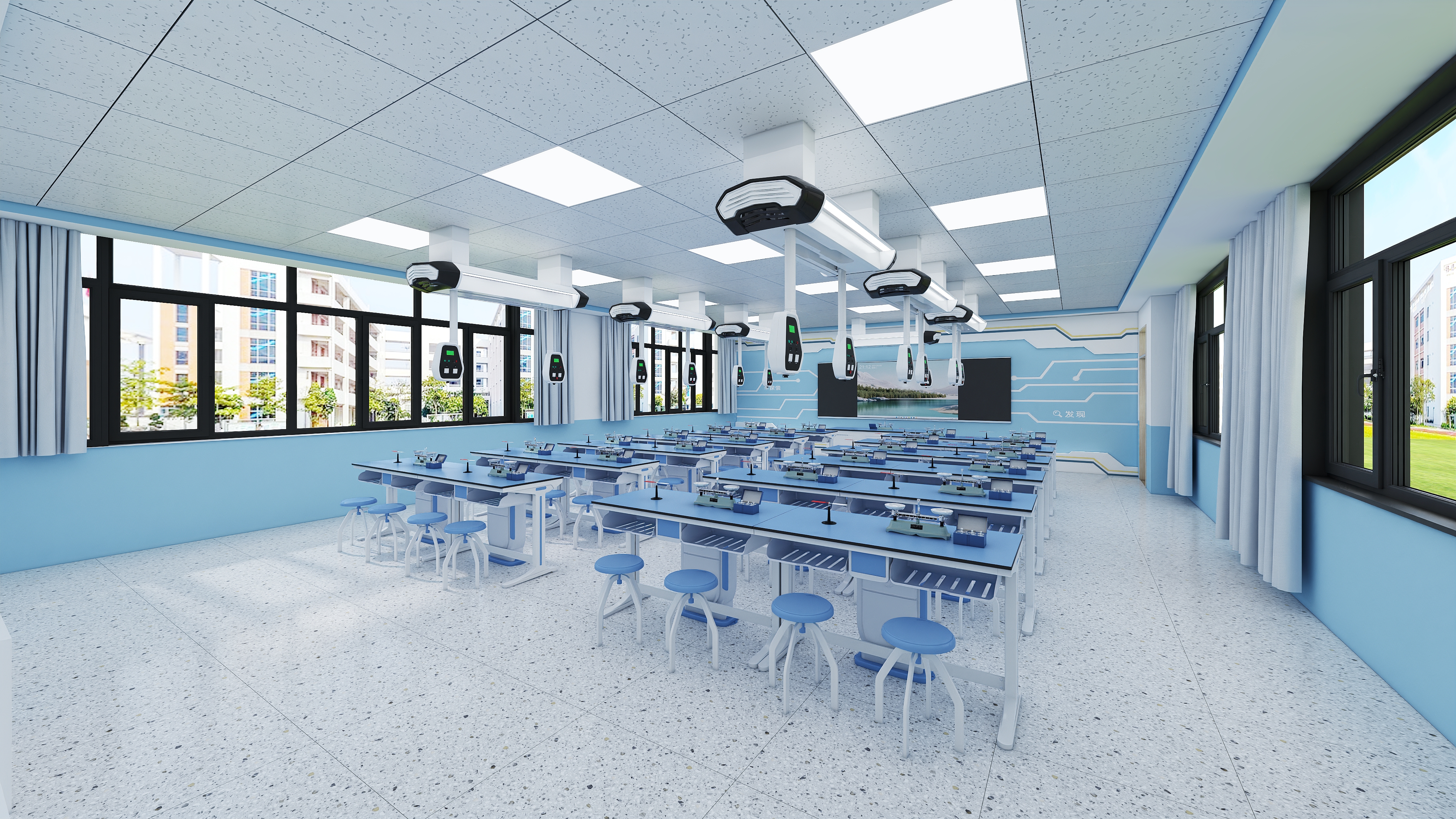 物理吊裝實驗室采用高低壓自動升降供電模塊,采用中央智能化集成控制系統,可實現教師電源獨立、分組控制升降。符合力學、電學、熱學、磁學實驗室的建設標準,同時融入先進的設計理念,提高學生的學習興趣和學習效率。