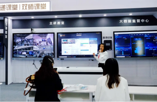 促進教育薄弱地區的教師專業成長,是“三個課堂”應用中的關鍵。在現代中慶AI+教師專業發展展區,用戶可以切身感受AI支持下的數據實證教研創新。