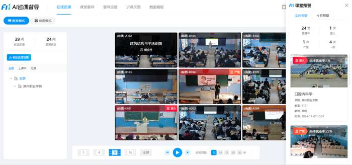 濱州職業(yè)學(xué)院引入現(xiàn)代中慶AI巡課與督導(dǎo)評價(jià)系統(tǒng),學(xué)院對原有巡評課系統(tǒng)進(jìn)行迭代升級,實(shí)現(xiàn)了教學(xué)質(zhì)量管理的“數(shù)字化+”賦能。