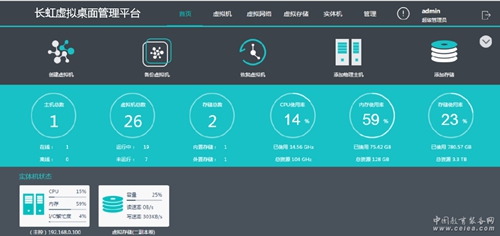 長虹云智能交互系統還提供了交互式虛擬桌面管理平臺,可實現智能交互大屏、筆記本電腦、臺式電腦、移動設備接入系統并獲得一個專屬的空間。系統為每一位老師分配一個賬戶,賬戶對應老師的個人專屬空間,為不同學科定制的個性化空間能夠更加方便老師的教學,無論是在學校的任意一間教室或者辦公室,老師們都可以通過自己的賬戶訪問個人空間隨時隨地移動備課和辦公。該管理平臺圖形化、可視化程度高,系統操作相對簡易,不需要過多的培訓和學習就能上手操作。同時,還可以實現用戶權限集中管理設置、虛擬機狀態監控及用戶行為查看、服務器性能狀態監測、終端狀態監測,遠程控制終端、客戶端支持強制重啟虛擬機、虛擬機資源分配及狀態管理等。
