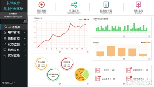 長虹教育云智能交互平臺可以實現多用戶管理、云交互式虛擬桌面、云端儲存、云端管控、云直播等子系統功能。
