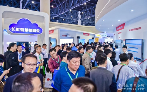 5月11日,由長虹獨家冠名的國內規模最大、具有裝備“風向標”的第74屆中國教育裝備展示會在成都‘中國西部國際博覽城’隆重開幕。本次展會吸引了來自國內外1500余家教育裝備企業和來自全國的教師、教育管理者、裝備制造商等。展會現場,長虹的展臺擠滿了爭先體驗長虹產品方案的用戶。
