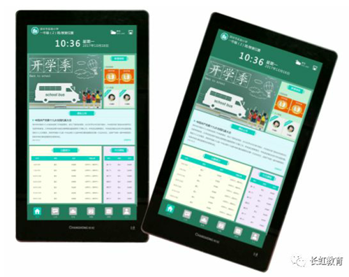 長虹教育·智慧班牌配備了智慧設備管理平臺,超高亮度,在陽光的照射下依然能夠清晰查閱各類資料,具有IP65級別的防水防塵能力,不用再擔心下雨臺風等淋濕淋壞。班牌支持多點觸摸,無需矯正,耐磨損、壽命長,維護成本低。采用RFID射頻技術,支持遠距離識別(1.5m),可實現20張/秒的同時讀取速度,摒棄傳統人工點名、手工簽到、耗時耗力的考勤方式,完成智能化考勤,并向教師、家長自動推送學生考勤數據。班牌同時顯示該教室安排的課程和任課教師信息,學生也可自主查閱個人課表和成績,班級信息、班主任信息、班級宣傳文化、班級活動照片、優秀標兵、學校通知公告,并可根據班級情況,個性化展示。