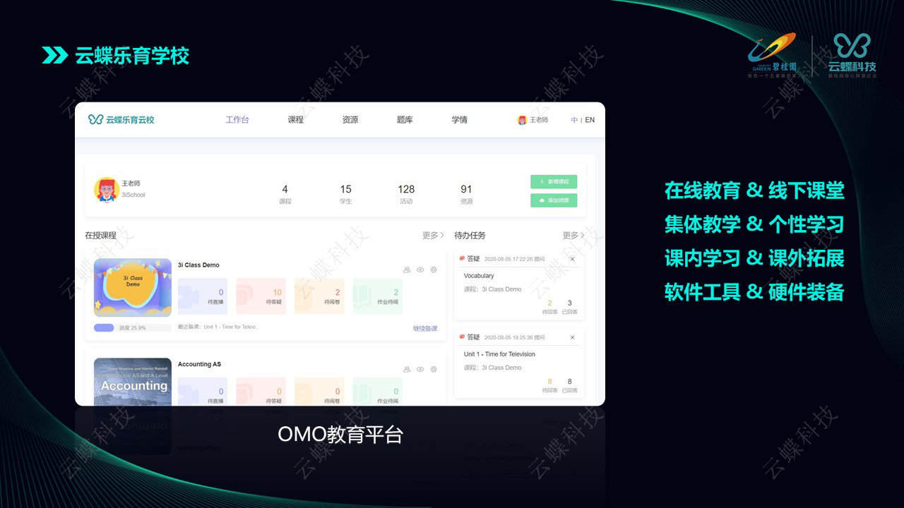 隨后,陳博士介紹了針對學校線上線下融合教學的云蝶樂育云校產品。
