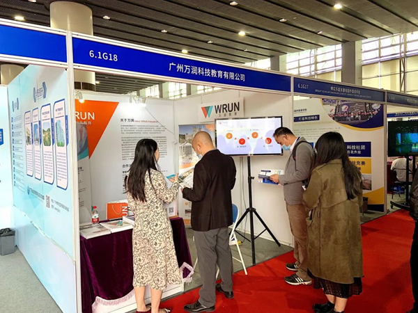 眾多參展人員駐足咨詢?nèi)f潤教育產(chǎn)品