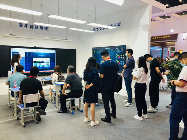 本次展會,廈華帶來了最新研發的軟硬件產品,其中廈華雙拼交互智能平板、廈華智慧黑板、廈華交互智能平板、廈華電子班牌等新品,在技術上不斷革新,以優異的性能與精巧的的外形贏得了眾多觀展者的青睞。