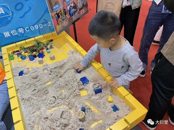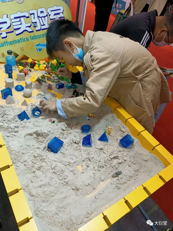 現(xiàn)場(chǎng)的小伙伴為參展人員耐心詳細(xì)地講解大衍堂的數(shù)學(xué)實(shí)驗(yàn)理念與綜合實(shí)踐解決方案,例如,以大衍堂首創(chuàng)、獨(dú)立研發(fā)的核心教具數(shù)學(xué)實(shí)驗(yàn)沙盤桌,通過沙盤提供一種數(shù)學(xué)教學(xué)方式,將抽象的問題具象化、復(fù)雜的問題簡(jiǎn)單化,在沙盤中搭建模型,建立場(chǎng)景,用可視化教學(xué)為廣大教育工作者解決實(shí)際問題。