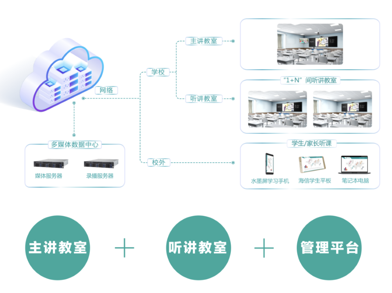 為響應(yīng)國(guó)家政策,推動(dòng)實(shí)現(xiàn)教育優(yōu)質(zhì)均衡發(fā)展,海信推出了 “三個(gè)課堂+”系統(tǒng)解決方案,打破傳統(tǒng)“1托3”限制,建立多間“1托N”教學(xué)子系統(tǒng),區(qū)域間可實(shí)現(xiàn)千間教室同時(shí)在線互動(dòng)學(xué)習(xí)。該方案不僅可滿足專遞課堂,名師課堂、名校網(wǎng)絡(luò)課堂的“三個(gè)課堂”的場(chǎng)景應(yīng)用,同時(shí)也可滿足教研會(huì)議、空中課堂、課后輔導(dǎo)、“4點(diǎn)半工程”、巡課督導(dǎo)等應(yīng)用需求。還創(chuàng)新性的提供了“遠(yuǎn)程講評(píng)”“答題互動(dòng)”等功能,搭配協(xié)作白板、隨機(jī)挑班、搶答等互動(dòng)工具,打造趣味性課堂互動(dòng)模式,讓主講老師充分關(guān)注到聽講班級(jí)的每位學(xué)生,即使相隔千里,猶如置身同一課堂。