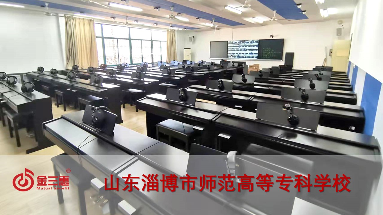 山東淄博市師范高等專科學校的數字音樂電鋼琴教室開始使用,由北京金三惠科技有限公司負責提供、安裝、培訓。