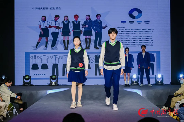活動(dòng)以“衣以載道、以美育人”為主題,現(xiàn)場(chǎng)展示包含中小學(xué)運(yùn)動(dòng)裝、中小學(xué)制服裝、教師職業(yè)裝五個(gè)類別共計(jì)300個(gè)系列作品。
