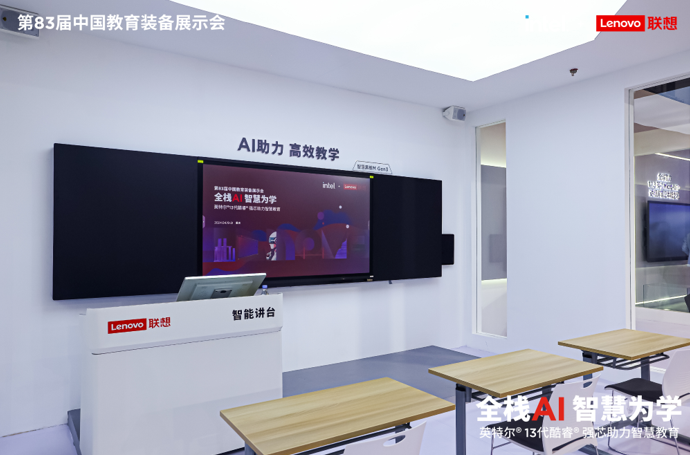 在本次教育展上,聯(lián)想發(fā)布了全新的智慧教育大屏、智慧黑板、智能講臺(tái)等多款產(chǎn)品。此外,聯(lián)想剛剛發(fā)布的AI PC新品也重磅亮相。
