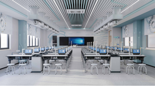 碟形氛圍燈搭配藍色光影營造未來感教學空間,多功能電源供應(yīng)裝置支持高低壓、交直流等多種接口,USB擴展設(shè)計兼容各類智能設(shè)備。液晶觸控顯示屏實時顯示運行數(shù)據(jù),防誤觸保護與高度自由調(diào)節(jié)適配不同身高學生。在第83屆中國教育裝備展示會上,該系統(tǒng)憑借“全場景安全防護+個性化教學支持”的特性,成為現(xiàn)場教育裝備觀摩的亮點。
